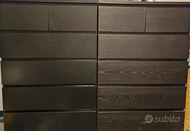 Vendo 2 cassettiere Malm ikea, una nera e una marrone/nera, preferibilmente in coppia , ma anche singolarmente, con qualche lieve segno di normale usura. Il prezzo si riferisce alla coppia.