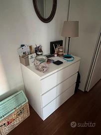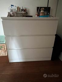 Cassettiera Ikea MALM 3 cassetti, bianca, in ottimo stato. Dimensioni: Larghezza 80cm Altezza 78cm Profondità 48cm Non presenta difetti. Ritiro possibile dall’1 al 24 luglio 2026. Venduta intera, lo smontaggio ed il trasporto sono a carico del compratore. Solo vendita con ritiro in loco.
