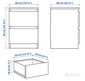 MALM -IKEA - 2 Comodini con 2 cassetti, marrone-nero, 40x55 cm In buono stato, funzionante con qualche segno di usura Vendo per trasloco