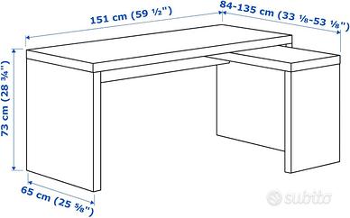 Scrivania MALM con pannello estraibile, 150x65 cm, impiallacciato rovere È in ottime condizioni ma su un lato è presente un alone grigio forse dovuto all'umidità