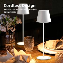 Diversi scenari: la lampada da tavolo a LED può essere facilmente trasportata ovunque senza cavi. Nella vita quotidiana, puoi usarla come lampada notturna. La lampada da tavolo ricaricabile può essere utilizzata come luce di emergenza in caso di interruzione di corrente, la lampada senza fili è adatta per campeggio all'aperto, bar, caffè, luce per feste, soggiorno, terrazza, cortile, giardino, ecc