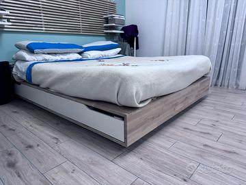 MANDAL IKEA, struttura letto in betulla massiccio, con 4 cassetti bianchi. Dimensioni 160x200cm.