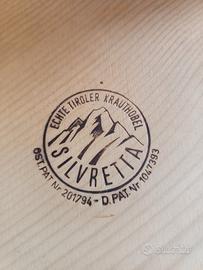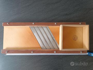 Vintage " Echte Tiroler Krauthobel " Silvretta Wooden Cabbage/Slaw/Kraut quadruple Blade Cutter Mandoline Mandolina tirolese in legno "Echte Tiroler Krauthobel" con cassetto a 4 lame per taglio di cavolo cappuccio, verdure, ecc Misure: L 75 cm / L 28 cm / H 11 cm
