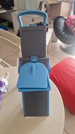 Tagliaverdure Verticale a Molla (Tipo Once For All) - Nuovo Vendo pratica mandolina verticale multifunzione per affettare frutta e verdura in totale sicurezza. Grazie al design a molla e allo spingitore incluso, le mani restano sempre lontane dalle lame. Caratteristiche principali: Versatilità: Permette di fare fette, julienne, cubetti e tagli a fiammifero con spessori regolabili (tramite le manopole sul retro). Sicurezza: Piedini antiscivolo e sistema di protezione per le dita. Salvaspazio: È completamente ripiegabile per essere riposta facilmente nei cassetti. Facile da pulire: Si smonta velocemente e può essere sciacquata sotto l'acqua. L'oggetto è in ottime condizioni, usato pochissimo e perfettamente funzionante. Ideale per chi vuole velocizzare la preparazione dei pasti senza rischi.