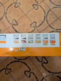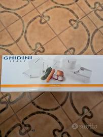 Vendo mandolino taglia verdure Ghidini Linea Easy, ideale per affettare e tagliare verdure in modo rapido e preciso. Completo di accessori e lame intercambiabili per diversi tipi di taglio (fette, julienne, ecc.). Usato pochissimo, in ottime condizioni. Facile da pulire e utilizzare, perfetto per cucina domestica. Vendo per inutilizzo. Prezzo trattabile.