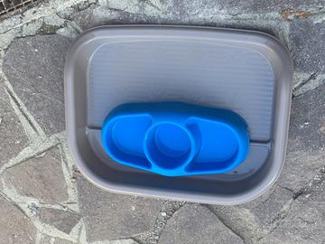 La ciotola blu si stacca per un lavaggio frequente.