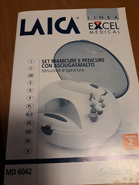 Vendo manicure Excel della Laica Medical Line completo di tutto. Attrezzo sanza filo con batteria ricaricabile (tramite carica batterie incluso) con sistema di asciugamento unghie incorporato. Usato poche volte vendo per inutilizzo (lo si può vedere dalle frese ancora intatte). Unico problema estetico una crepa sul coperchio, il resto è apposto!
