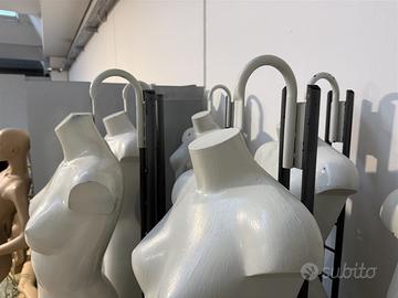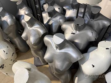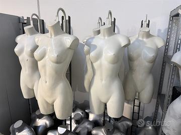 Disponibili diversi manichini da donna sia completi di base e struttura in ferro, sia solo busti. Condizioni: usati, alcuni con segni di usura/vernice, altri in buono stato. Prezzi : - Manichini solo busto = 50 iva compresa cadauno. - Manichini bianchi con struttura in ferro = 110 iva compresa cadauno. - Manichini grigi di ottima qualit = 130 iva compresa cadauno.