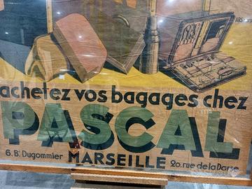 Bellissimo Manifesto pubblucitario della storica maison di Mallet Bertault fondata nel 1860 , specializzata nella produzione artigisnale e vendita di bauli , valigeria , bagali "PASCAL " . Il Manifesto risale al 1930 , incorniciato vetro con vetro , qualche piccola sgocciolatura di umidità sul lato destro , ma nel complesso è decisamente un pezzo raro e in ottime condizioni considerando l età.