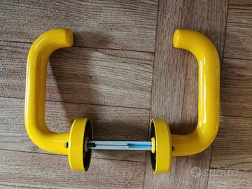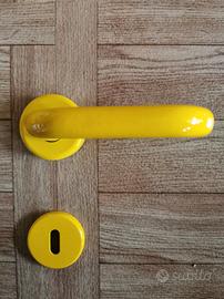 Coppia maniglia "DOMUS" in alluminio di colore giallo con rosetta con dotazione gli accessori per il montaggio. Disponibili diverse coppie vendibili anche singole coppie.