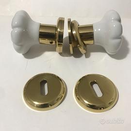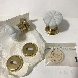 Maniglia Pomello per porte interne marca Poggi e Mariani in materiale ottone e Porcellana bianca.