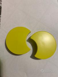 Maniglie per mobili cameretta, sui toni del verde, a forma di luna mezzaluna, usate ma tenute benissimo. Si vende il kit completo, composto da nove maniglie grandi di circa 15 cm, e 20 maniglie pomelli di circa 5/6 cm. Ritiro in zona Cosenza.