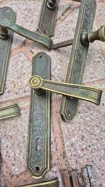 VendoManiglie antiche in ottone martellato nuove mai usate n.16 pezzi con viti per legno originali in ottone