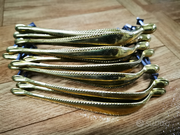 Gruppo di 11 maniglie antiche in ottone per mobili interasse cm. 15. Risalenti agli anni 50'