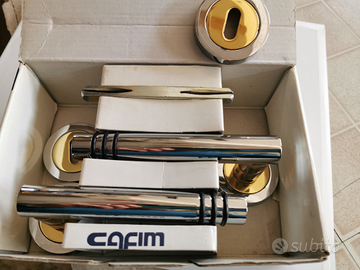 Coppia maniglia "CAFIM" finitura cromo e ottone-lucido completa di accessori per il montaggio