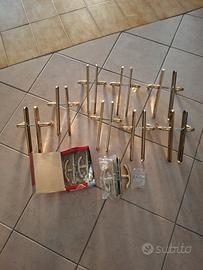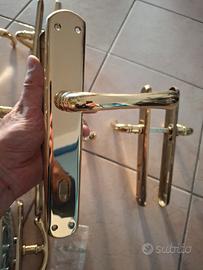 Vendo 8 maniglie dorate per porte interne e 2 maniglie dorate per finestra, queste ultime ancora imballate.