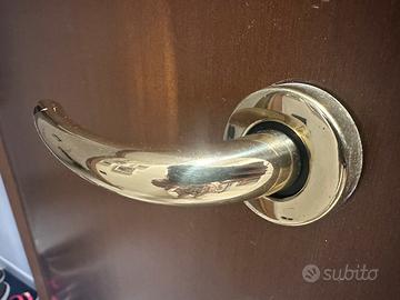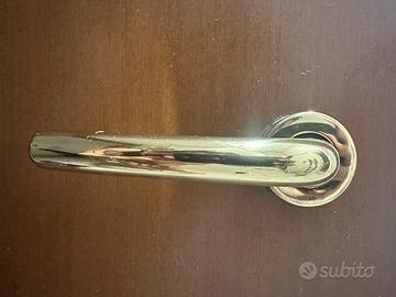 5 maniglie color oro lucido in buone condizioni. Qualche segno di usura che si manifesta con alcune righe, poco visibili.