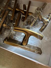 Vendo in blocco n 10 maniglie per finestra in ottone bronzato, sistema Cremonese, mai usate.