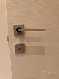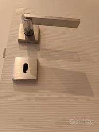 Vendo per cambio arredamento come nuove in perfette condizioni N° 4 maniglie per porte interne, satinate con il pezzo tondeggiante cromato come foto dimostra, complete di viti ed accessori vari.