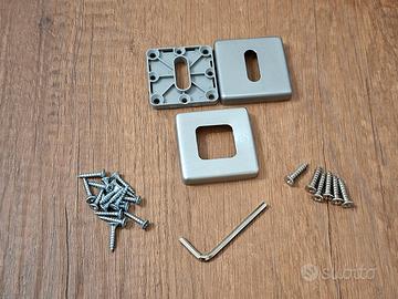 Maniglie Hoppe per porte interne Dublin in alluminio con bocchetta quadrata. Le vendo perché le ho sostituite con altre tre maniglie di un altro colore. Le maniglie sono ben tenute, qualche pezzo nello smontaggio potrebbe essersi leggermente rovinato. Ovviamente, disponibile ad inviare qualsiasi altra foto. Insieme alle tre maniglie comprese di vite a brugola già inserita invio anche 17 viti piccole e 6 viti piccole ma un pochino più grandi. Invio anche la chiave a brugola.