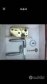 5 x set di maniglie porte in acciaio satinato complete (Maniglie,serrature,chiavi,viti etc) Prezzo trattabile