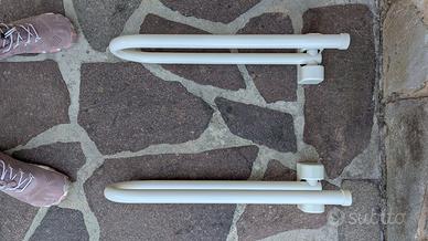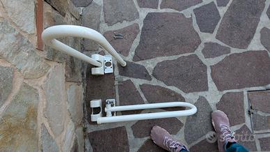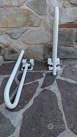 Vendo per inutilizzo coppia di maniglioni/ impugnature di sostegno utili a rendere sicuro l' ambiente bagno. Gli ausili sono in acciaio zincato rivestito con vinile biocompatibile rifiniti a polveri epissidiche e copri flangia in poliammide. Misure : lunghezza cm 60 larghezza cm 20