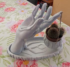 Originale decorazione a forma di mano che sorregge un vaso sospeso. Ideale per aggiungere un tocco artistico al tuo spazio.