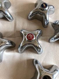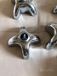 Vendesi 6 manopole in metallo cromate [no plastica] per rubinetto lavandino/lavabo della Rubinetterie Bandini anni 70/80. 2 nuove mai usate, 4 usate di cui 2 senza tappo chiusura-logo. Stessa misura, stesso attacco.