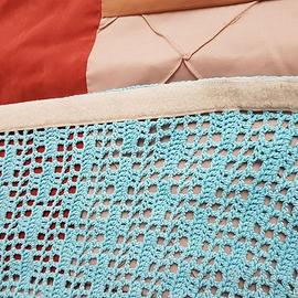 Mantovana fatta interamente a mano all'uncinetto in cotone color turchese. Già predisposta con feltro adesivo per applicazione facile. Vendo a 90 euro.