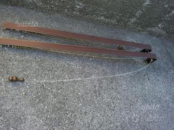 Due mantovane per tende in metallo con facciata in simil legno, complete di viti, corde e mollette, dimensioni cm 160 X 18 x 6 e 157 x 18 x 6 , in perfette condizioni, vendo a 5 euro