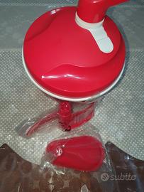 Chiamato anche moschettiere chef, mai usato,un noto marchio di casalinghi, mini robot da cucina,manuale,completo di accessori, monta,sminuzza,impasta e mescola . Misure sono in altezza 19.5,larghezza 15.5,capienza lt 1,5. Non esitate x ulteriori informazioni