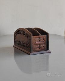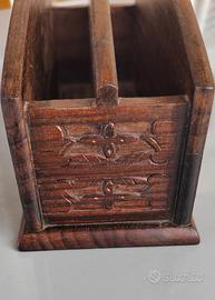 Manufatto in legno Indonesiano da scrivania, realizzato artigianalmente e decorato con intagli.