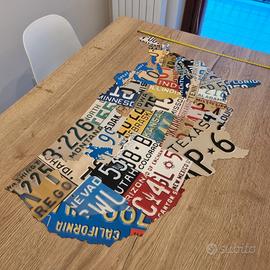 Mappa in metallo con targhe USA vintage, larghezza 90cm circa, altezza 60cm circa, made in USA e importata dall'Indiana.