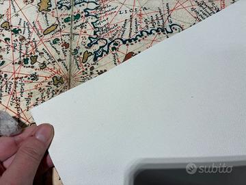 Stampa di alta qualità su tela canvas 100% cotone con grammatura 380 raffigurante una mappa antica del Mar Mediterraneo ed Egeo con la Grecia e le isole di Cipro e Creta.