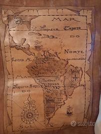 mappa vintage in cuoio. dimensioni : 47 x 76 cm mappa 65 x 90 cm appesa con aste di legno ( ingombro totale )
