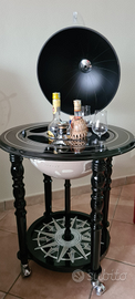 La sfera misura 40 cm di diametro; al suo interno potrai riporre 2/3 bottiglie e circa 9 bicchieri. Per gli altri liquori, potrai usufruire del vano inferiore sulla base, mentre il ripiano superiore attorno al globo sarà una comoda superficie per la preparazione dei tuoi drink.