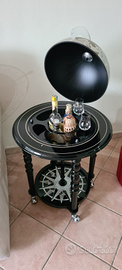 - Struttura: 3 gambe a spirale realizzate in legno di faggio, meridiano nord, vano interno portabottiglie, ruote.