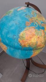 mappamondo in legno con ruote e lampada interna