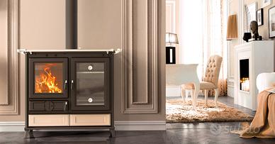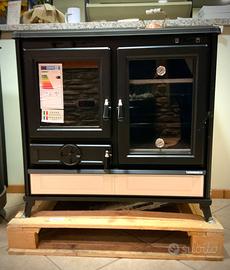 Modello: Margherita by Thermorossi Cucina a legna Descrizione: Libera la tua fantasia in cucina grazie all'ingegnoso dispositivo brevettato «PANEPIZZA». Un'unica grande porta racchiude due forni indipendenti: gestisci come vuoi il calore, il forno superiore è in grado di sfruttare temperature più alte grazie ad un giro fumi dedicato, 400° sul forno superiore, 350° sul forno inferiore. Entrambi i forni hanno la base in pietra ollare e termometro dedicato. POTENZA NOMINALE: 12.1 KW Questo prodotto è conforme alla Classe 5 Stelle secondo i requisiti di emissioni e rendimento del Decreto 7 Novembre 2017, n. 186 Area riscaldabile: 109 m2 Comprende: 1 - Uscita fumi Ø 130mm 2 - Starter 3 - Piano cottura in ghisa levigata completo di cerchi in ghisa 4 - Cornice in ghisa 5 - Corrimano laterale (optional) 6 - Tecnologia «PANEPIZZA»: per gestire le temperature dei due forni 7 - Dispositivo per la regolazione dell'aria secondaria 8 - Porta focolare in ghisa 9 - Camera di combustione in ghisa (HxLxP - 36x30x45 cm) 10 - Bocca di carico (LxH - 28x27 cm) 11 - Forno smaltato superiore con base in pietra ollare (HxLxP - 10x32x43 cm) 12 - Forno smaltato inferiore con base in pietra ollare completo di leccarda (HxLxP - 25x32x43 cm) 13 - Dispositivo per la regolazione dell'aria primaria 14 - Vano porta attrezzi ‼️ SPEDIZIONE ‼️ Attenzione, il costo di spedizione scritto in questo annuncio è indicativo: potrebbe essere inferiore, dipenderà dall'indirizzo di destinazione e dal modello scelto. Per ricevere informazioni dettagliate sui costi di spedizione, vi invitiamo a contattarci indicando il vostro indirizzo completo. Saremo lieti di fornirvi tempestivamente tutte le informazioni necessarie. Spediamo in tutta Italia e anche all'estero. Alternativamente l’articolo è disponibile per il ritiro presso la nostra sede di Villadossola.