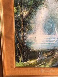 Mario Bagat - quadro di dimensioni 40 x 70 - Paesaggio boschivo con laghetto