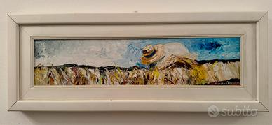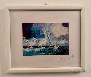 Vendo 2 quadri e 2 stampe autografe del pittore Mario Berrino. Solo in blocco. Grano 56x21 Vele 43x22 Mercato (Stampa) 39x24 Vele (Stampa) 20x24