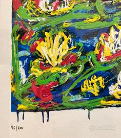 Mario Schifano - "Ninfee" - Serigrafia Materica