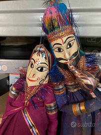 Set di 2 pezzi di marionette di stoffa Vintage indiano Stringa Puppets fatte a mano, marionette indiane tradizionali dal nord del Rajasthan, Jaisalmer , India. Le foto descrivono l’effettivo stato degli articoli