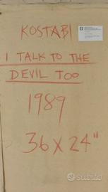 Originale dipinto di Mark Kostabi ‘I talk to the devil too’ del 1989, olio su tela 92cm x 61cm. In condizioni molto buone