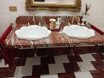 Marmo color rosso di Francia, piu' 2 lavandini a forma di conchiglia e rubinetteria