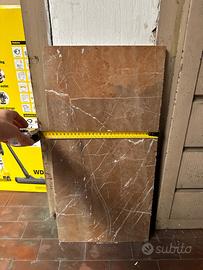 Vendesi, come da titolo, lotto di marmo Etrusco (rosso) e marmo Perlato di Sicilia (avorio). Il lotto è così composto: n. 11 lastre di Perlato di Sicilia (avorio): 40x60x3 cm (l*a*p) n. 40 ca. lastre di marmo Etrusco (rosso): 30x60x2 cm (l*a*p) Il lotto è stato recuperato dalla pavimentazione di cantiere è presenta qualche segno di usura. Qualche angolo può risultare sbeccato ma non ci sono crepe. Il prodotto risulta integro. Considerato il volume ed il peso, non è ammessa la spedizione. Non è ammesso il reso Ritiro in loco, facchinaggio al piano strada (da seminterrato) a carico dell'acquirente. Prezzo leggermente trattabile. Visto e piaciuto. Massima serietà. Astenersi perditempo ed eterni indecisi