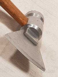 Particolare oggetto Vintage da cucina per battere e tagliare, in acciaio e legno, pare essere di un altro periodo non attuale.