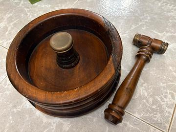 Antico martello da giudice o battitore d aste in legno e bronzo della fine dell 800.