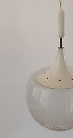 spedisco con UPS o BRT ma NON con Poste italiane Mushroom Vintage Space Age Lamp Lampadario / Lampada a sospensione dall'inconfondibile forma di fungo struttura in metallo smaltato bianco, boccia / diffusore in vetro Martinelli Luce modello 1804 (adesivo con marchio del produttore assente) design vintage space age modernariato anni '60 / 70 disegnata da Elio Martinelli per Martinelli Luce negli anni 60. diametro massimo boccia 30cm ca altezza boccia 22cm ca in condizioni molto buone le foto sono parte integrante della descrizione vista e piaciuta
