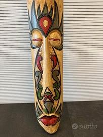 Vendo maschera africana in legno da appendere a parete, realizzata, dipinta e intagliata a mano. Ottimo oggetto d'arredamento donando un delizioso tocco etnico. Dimensioni: Altezza: 1490 mm.